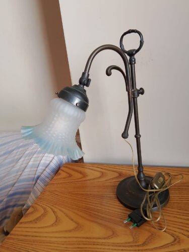 Lampada in ferro battuto pesante in ottimo stato, molto versatile. Lo stelo si muove e pure il cappello in vetro satinato, dove si trova una levetta, si può regolare. Completa di lampadina nuova. Possibilità di visionarla qualsiasi giorno della settimana. Possibilità di spedizione. Vendo a euro 50. Tel 339/1246402.